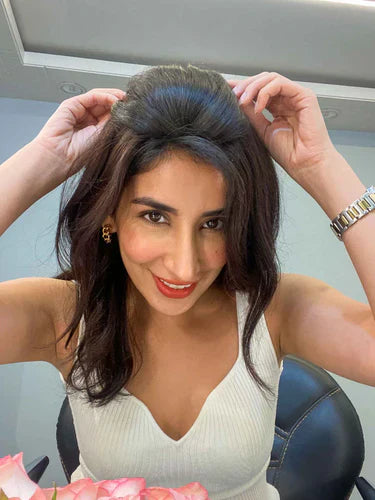 - Elara hair Volume Boosting Hair Topper is the latest addition. Have been thoughtfully made to give you the most natural hair coverage/look. This new hair topper is extremely light weight. Can be clipped to cover front hair loss/thinning. Made on Black Lace , For seamless look. Backcombed - Perfect for making puff hairstyle. Mini Version of Backcombed Hair Topper. Made with 100% synthetic Fiber